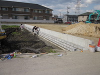 敷地の境界線上にコンクリートブロックを積み→土入れ→整地します。